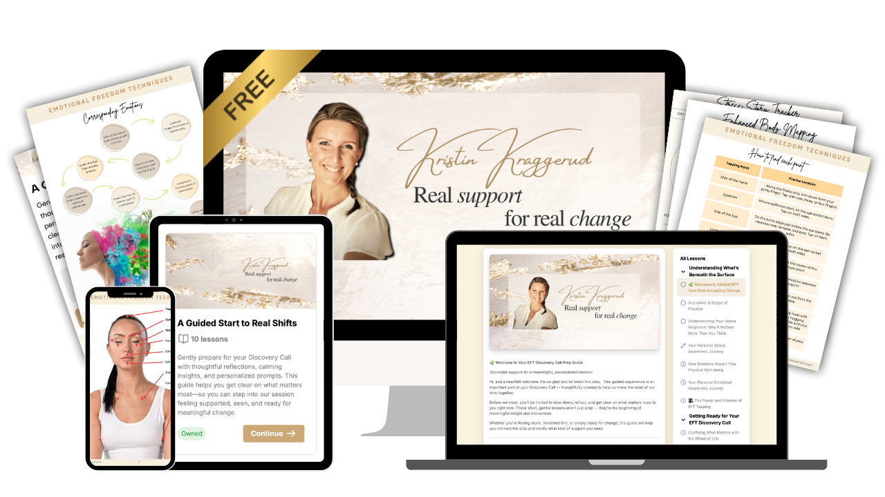 I, Kristin Elise Kraggerud, am a certified Master EFT practitioner but am not a licensed medical or mental health professional. My services provide peer-to-peer coaching, where you are the expert in your own healing journey, and I bring my expertise to guide and support you using EFT techniques.